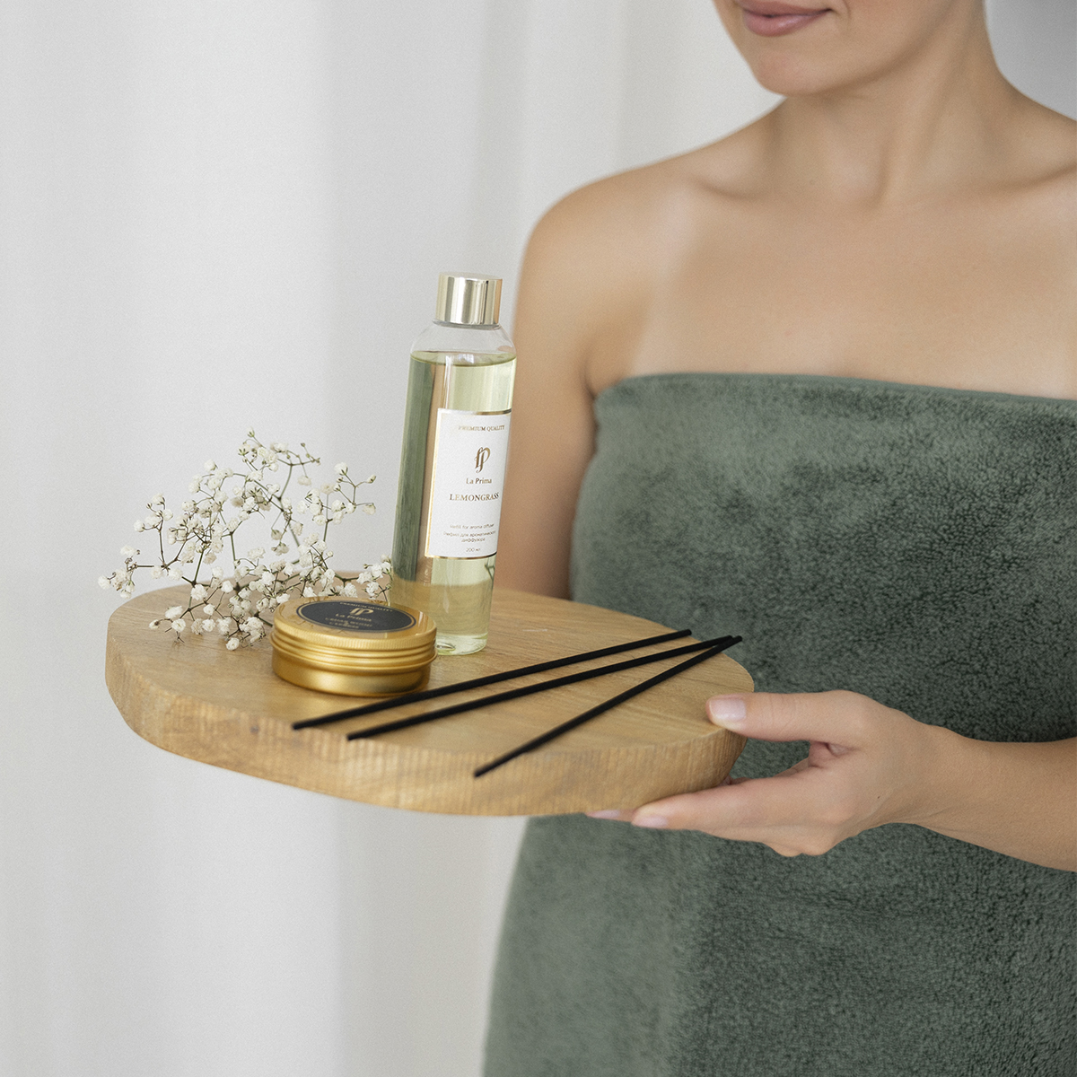 «Lemongrass» (Лемонграсс) Аромат - Легкий, воздушный, сладковатый аромат с мягким цитрусовым мотивом и едва уловимой травянистой ноткой. Своим ненавязчиво-приятным звучанием он поднимает настроение, бодрит и тонизирует.