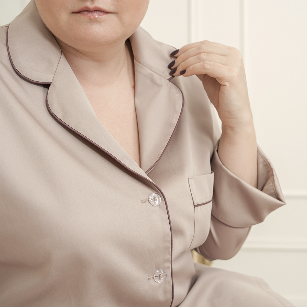 Пижама выполнена из 100% длинноволокнистого египетского хлопка высшего сорта, очень мягкого и приятного на ощупь - доставит удовольствие от каждого прикосновения