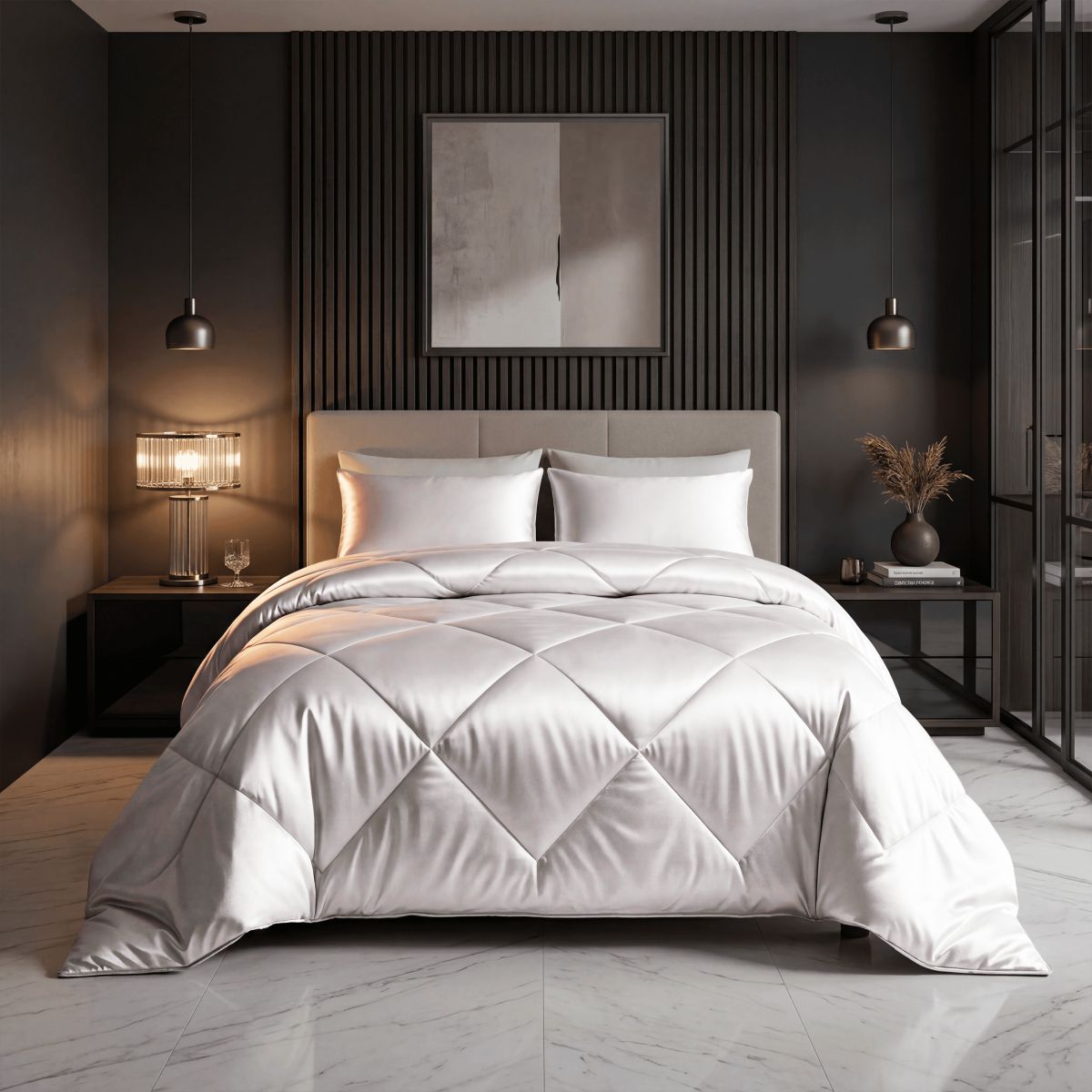 Благодаря объемному наполнителю одеяло обволакивает приятной тяжестью, создавая эффект антистресс-объятий, тем самым помогая полноценно расслабиться и быстрее заснуть.
