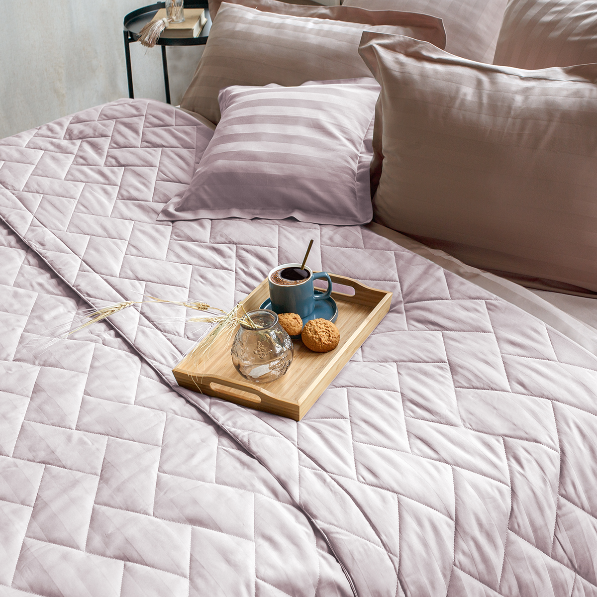 Хлопковые покрывала представлены двумя фактурами ткани из 100% хлопка: STRIPE САТИН – жаккардовая ткань с полосами и PAISLEY – сатиновая ткань с печатным орнаментальным рисунком.