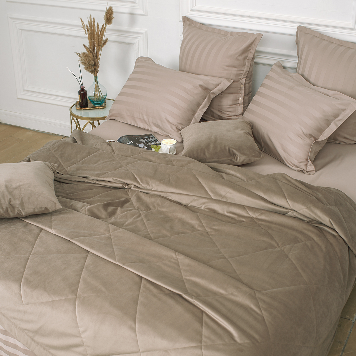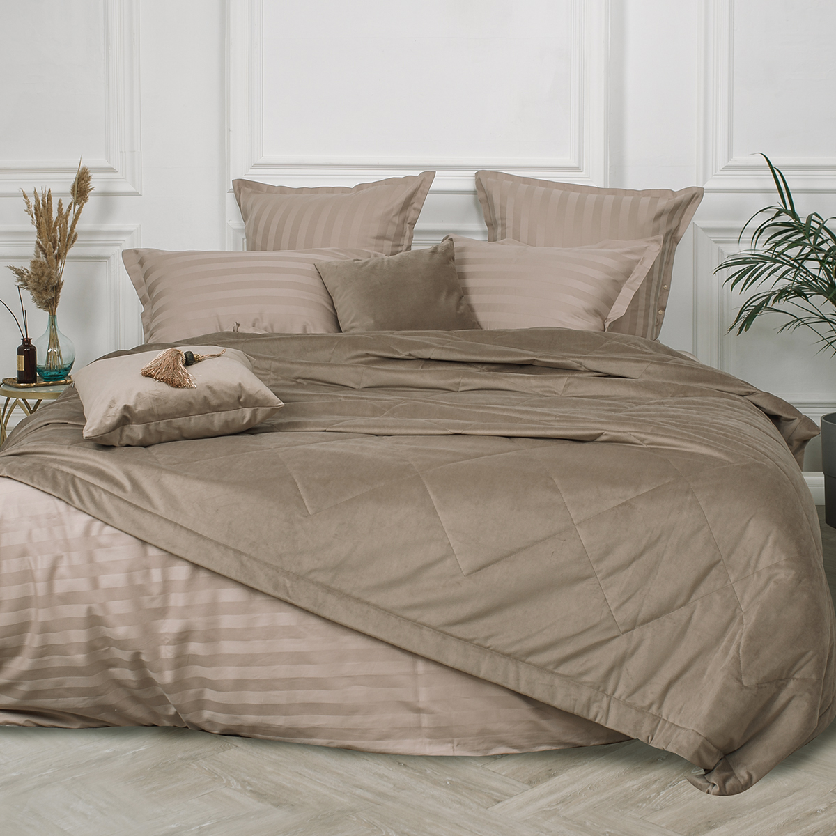 В комплект входит: стеганное покрывало на подкладе размер 240*260 см. Наволочек в комплекте нет.