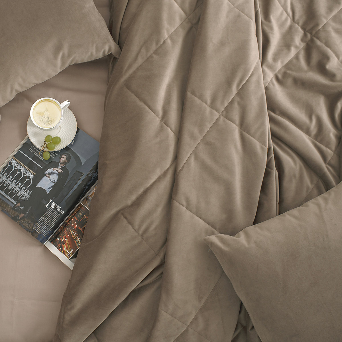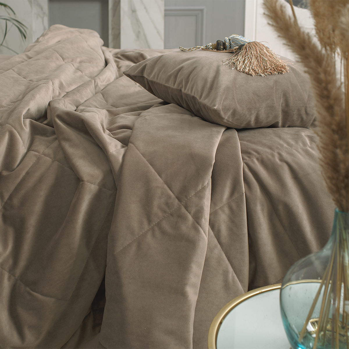 Состав: бархат 100% пэ, наполнитель - полиэфирное волокно. Стежка в виде ромбов.
