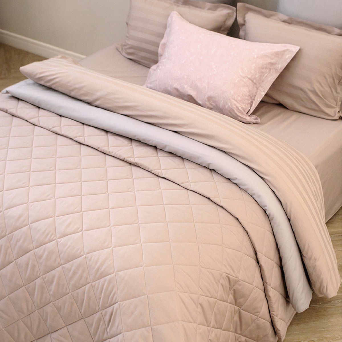 ОСОБЕННОСТЬ модели: хлопковое покрывало на кровать с закругленным уголком, практичной окантовкой по периметру изделия и стильной стежкой в виде ромбов. Верхняя и нижняя часть покрывала выполнены из высококачественного сатина - безопасного и натурального материала.