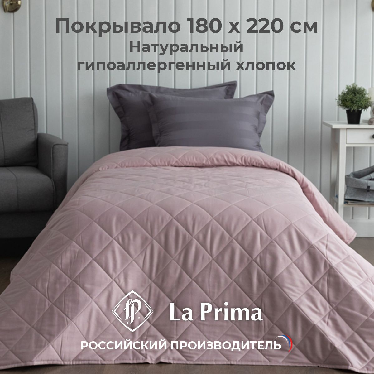 - Удобное решение для оформления интерьера в едином стиле - покрывала выполнены в тех же расцветках и из той же ткани, что и однотонное постельное белье La Prima.