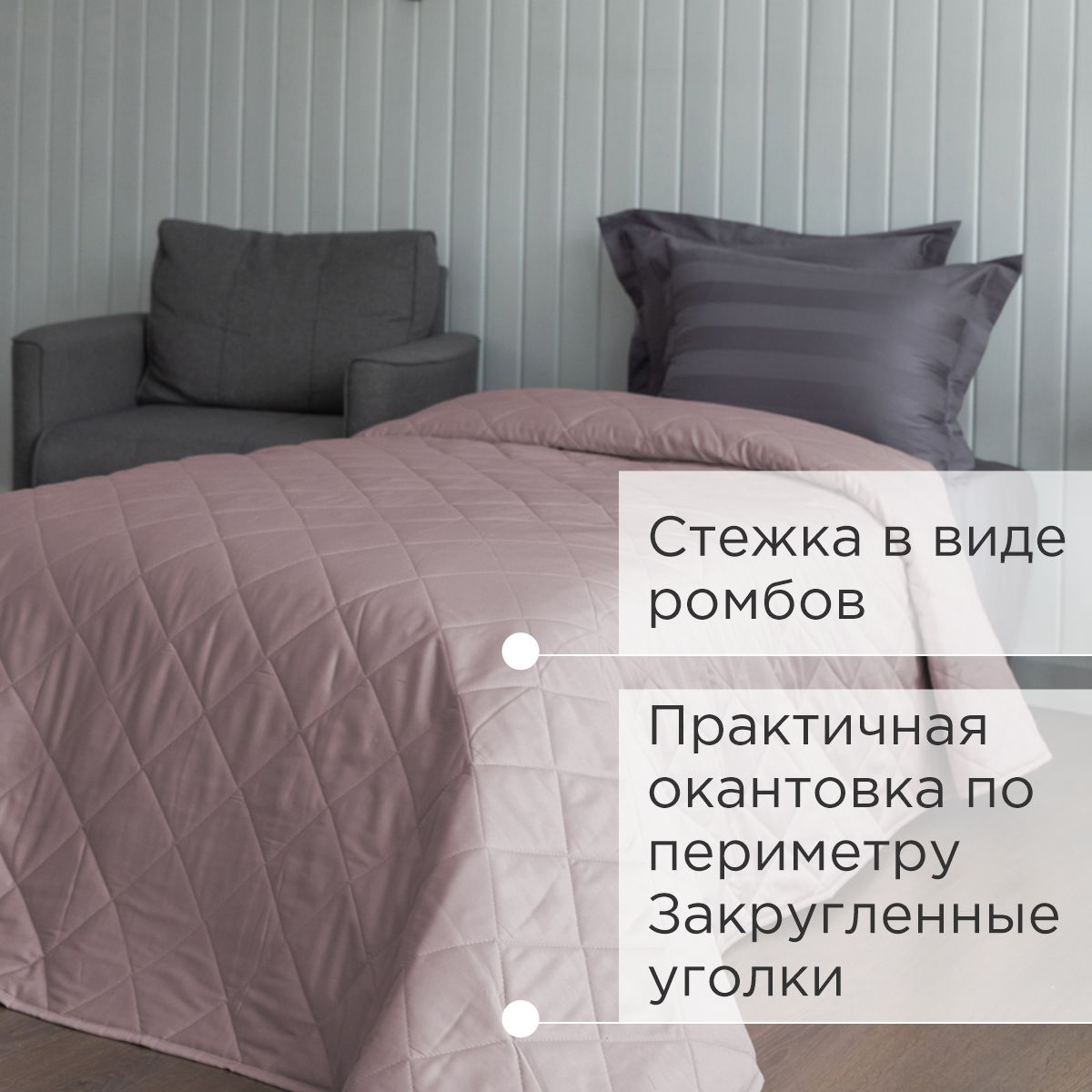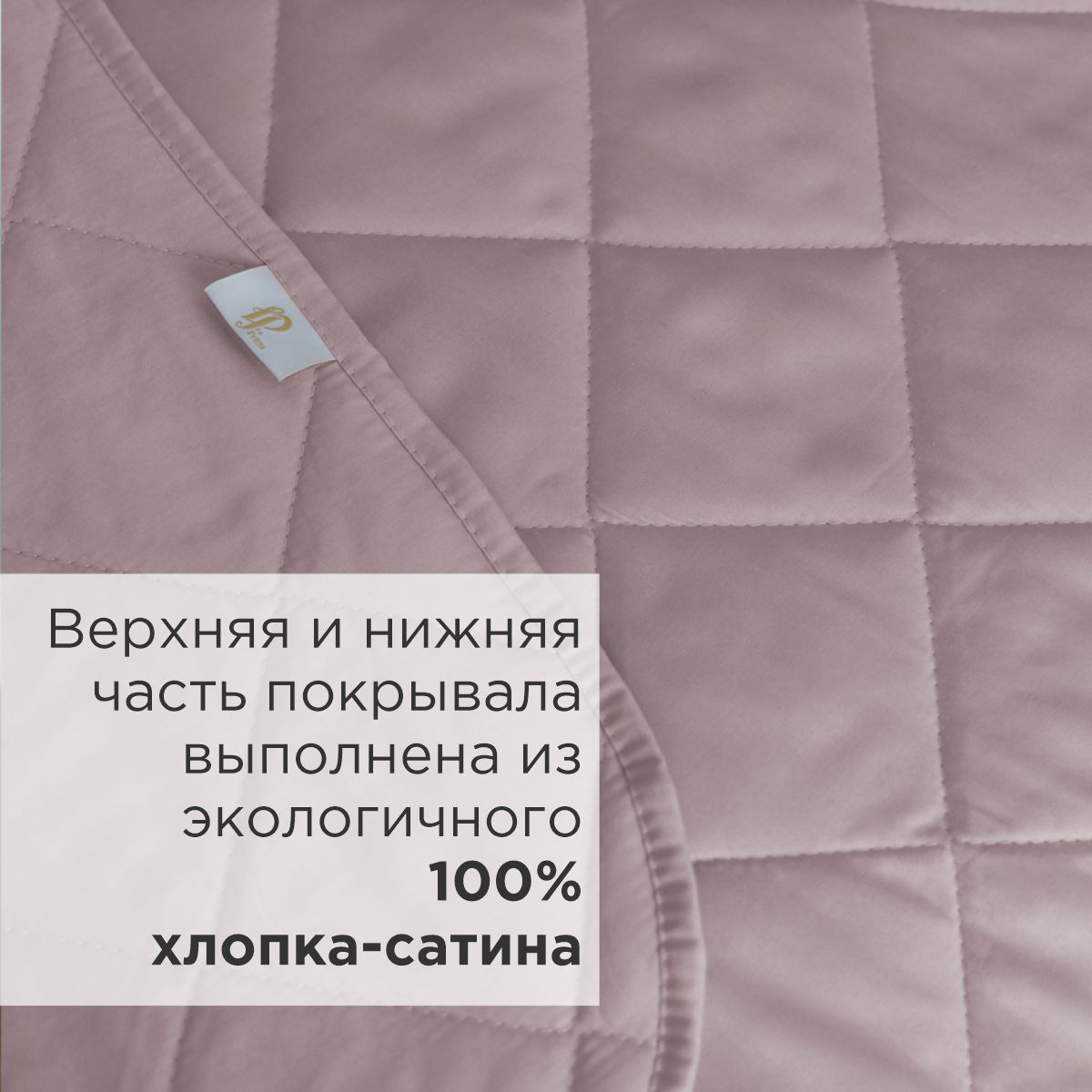 - Верхняя и нижняя часть покрывала выполнены из высококачественного сатина – безопасного, натурального и комфортного материала.