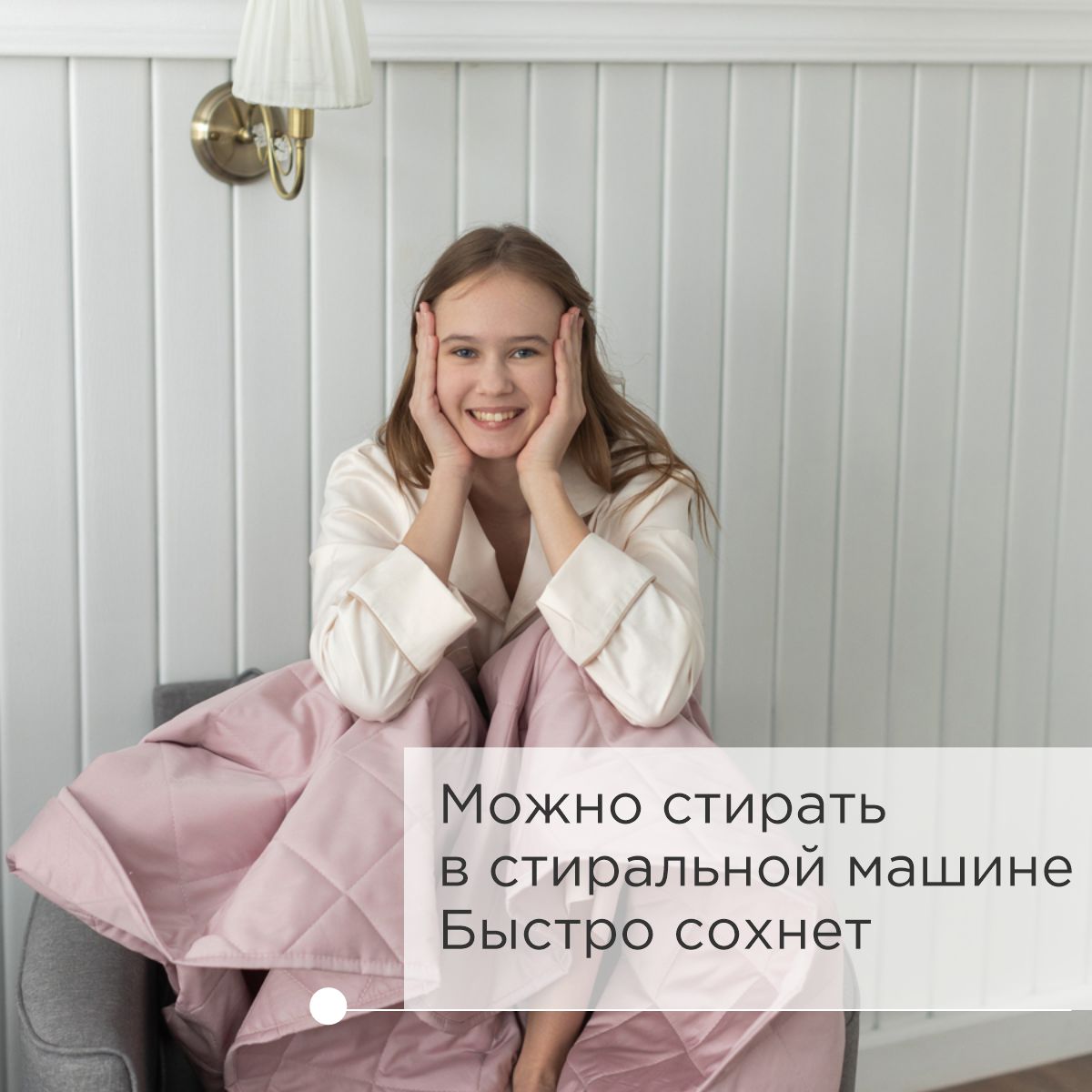 За покрывалом очень легко ухаживать, его можно стирать в стиральной машине. Покрывало стеганое практично: на хлопковой ткани не остается зацепок.