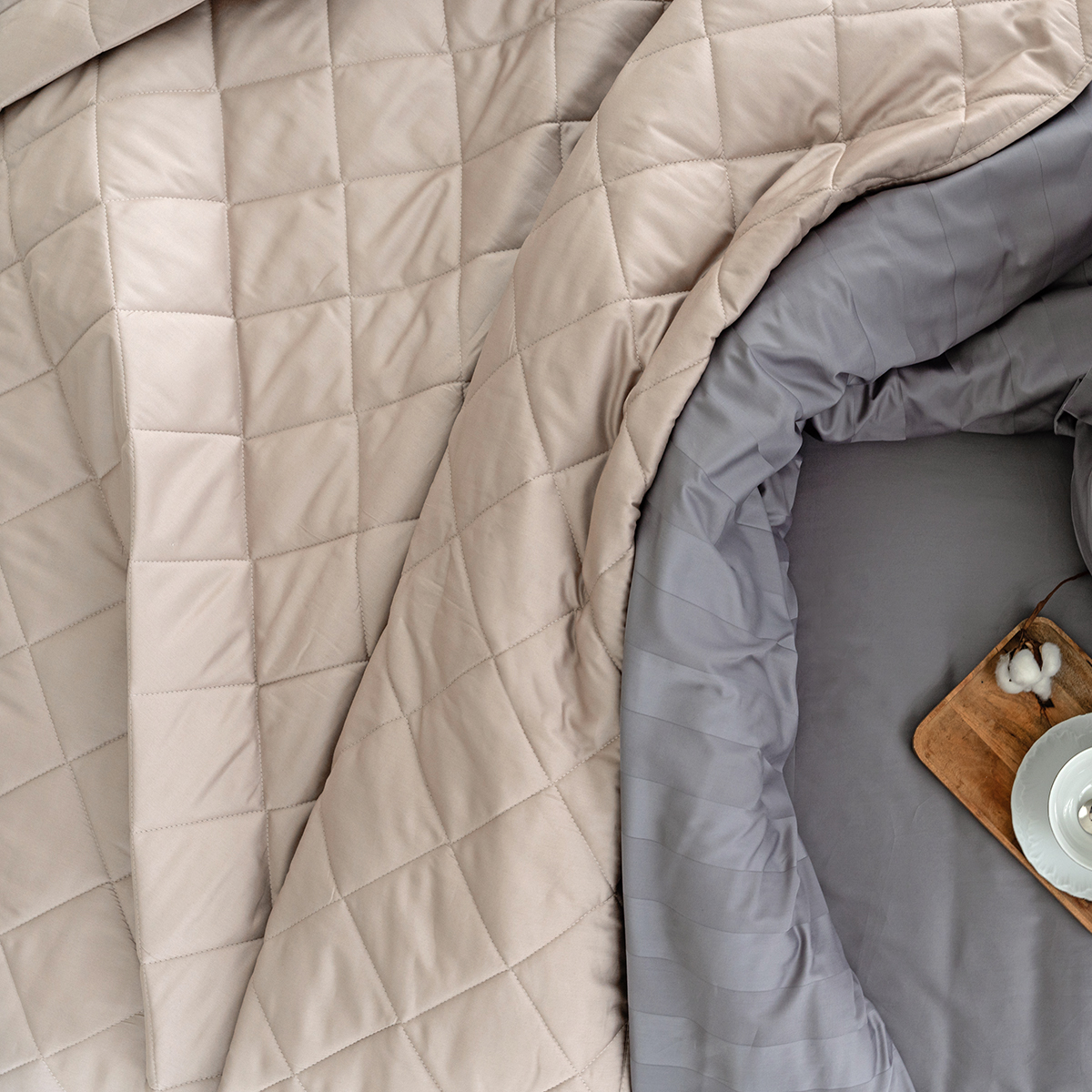 Стеганое покрывало многофункционально: его можно использовать как покрывало для декорирования кровати, так и как легкое одеяло. Покрывало простегано тонким слоем гипоаллергенного наполнителя.