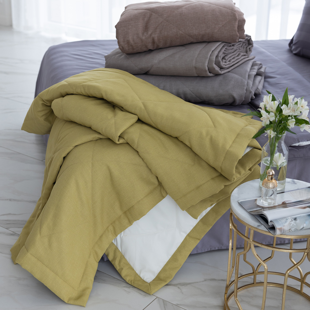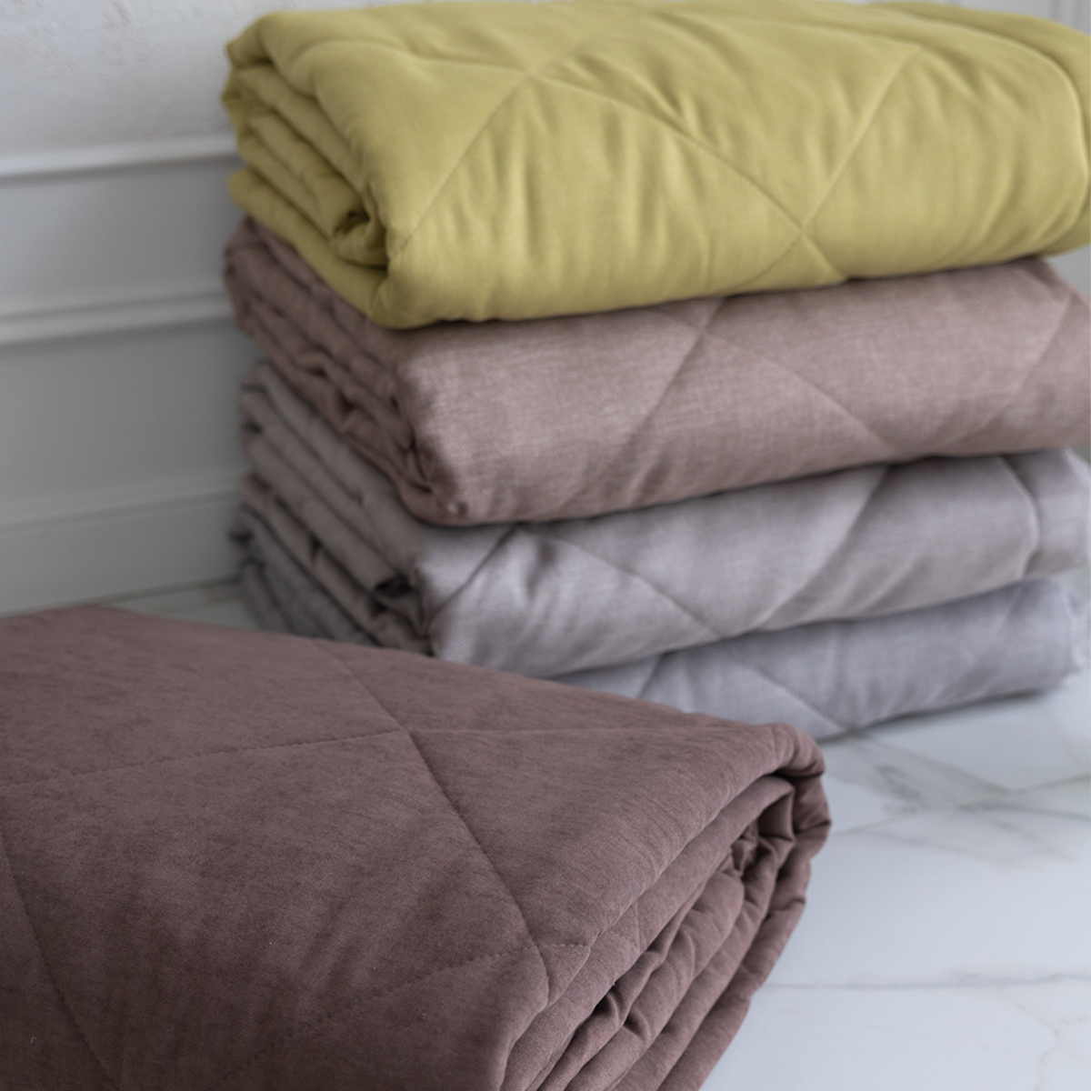 Подклад: микрофибра велюр, за счет своей фактуры он предотвращает скольжение покрывала на кровати.