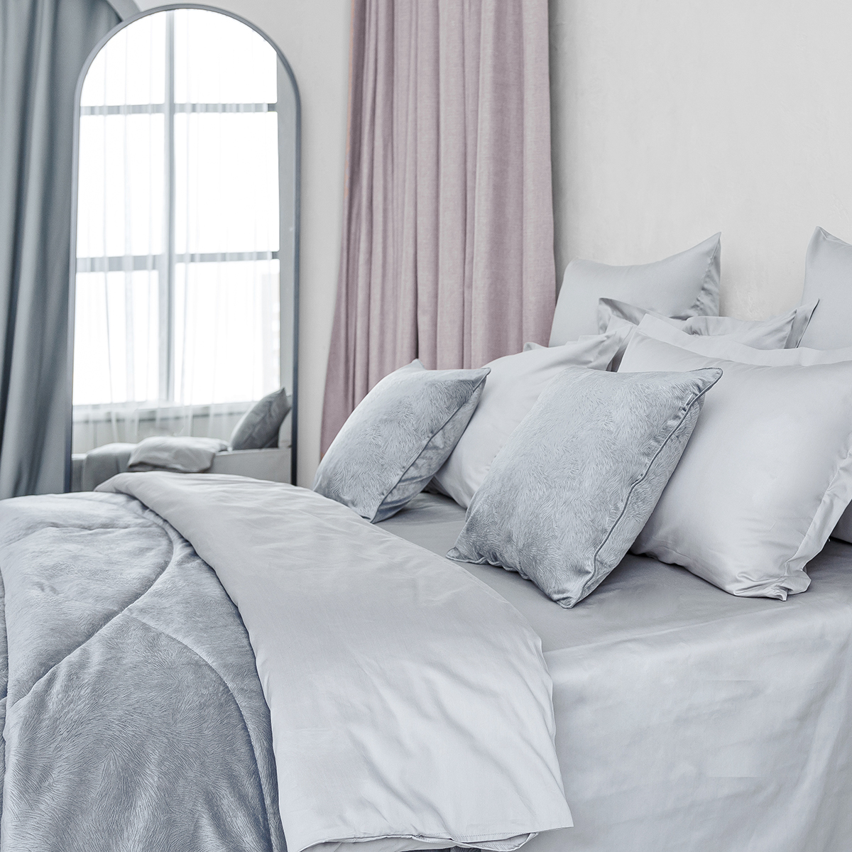 В комплект входит: покрывало стеганое на подкладе 240х260см и декоративные наволочки на молнии 45х45см