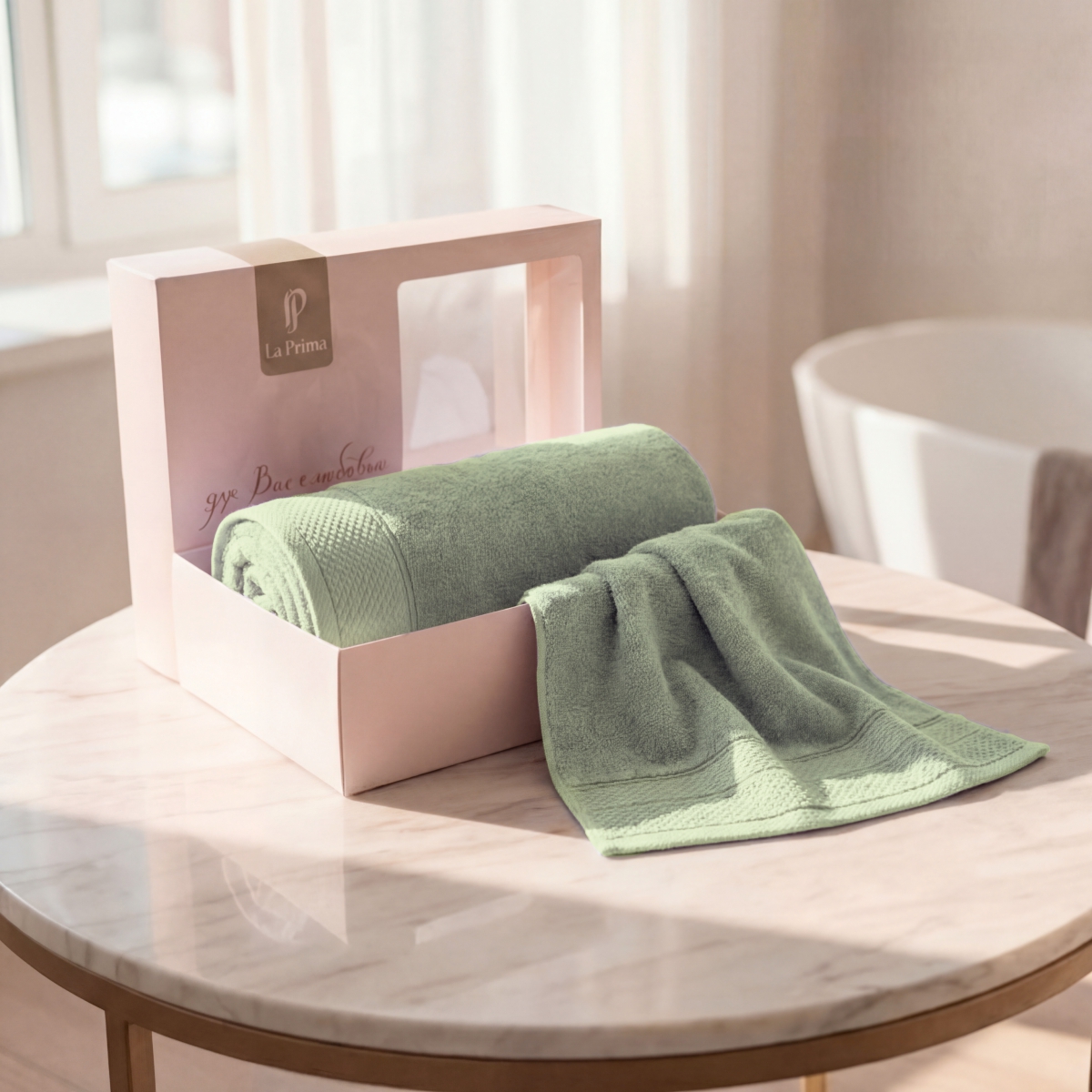 Два пушистых полотенца, упакованные в стильную коробку— вам остаётся только вручить.