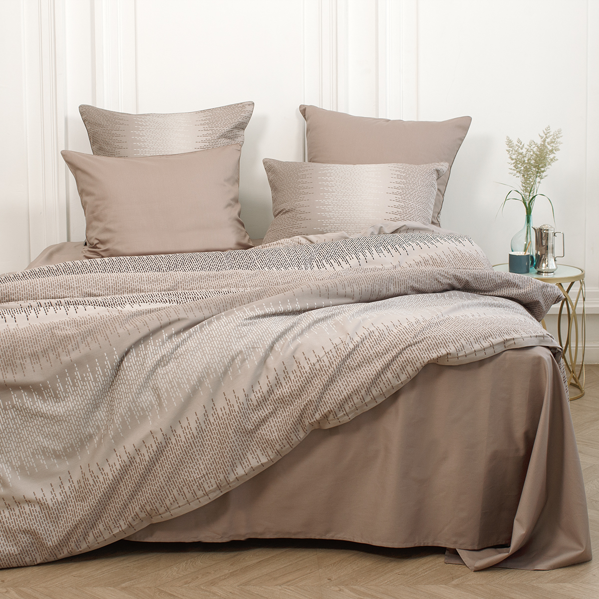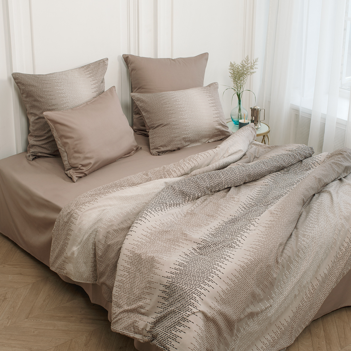 • Наволочки и пододеяльник изготавливаются из тканей двух видов: с рисунком и однотонной. Контрастная декоративная отделка эффектно и в то же время гармонично соединяет все элементы в единый шикарный ансамбль.