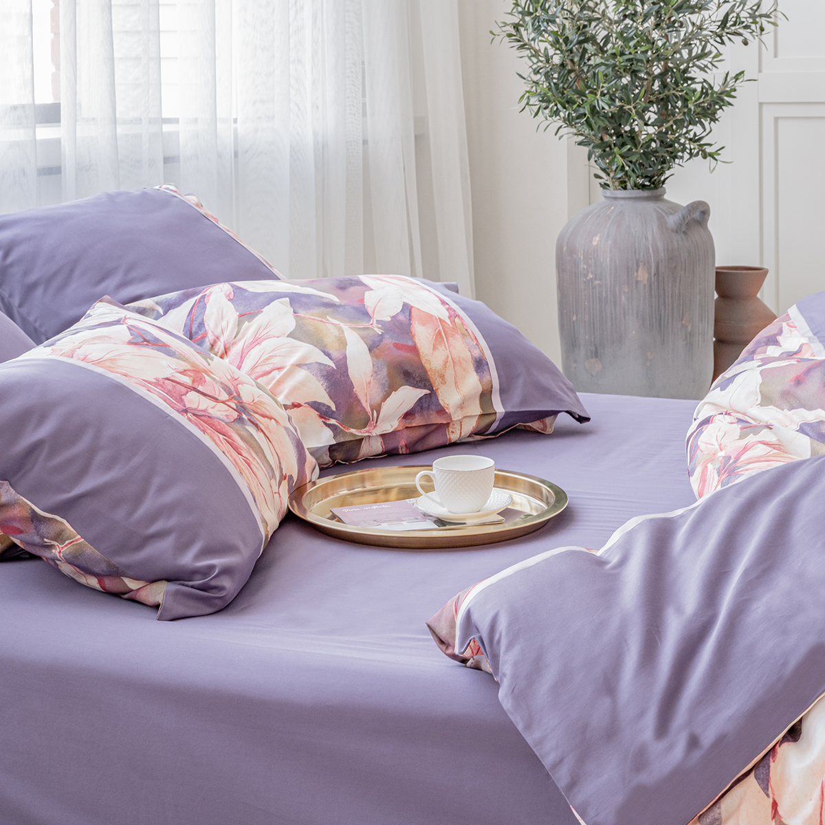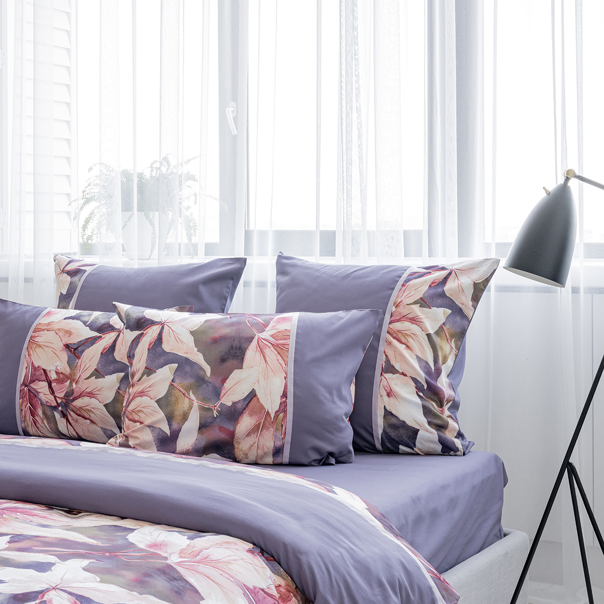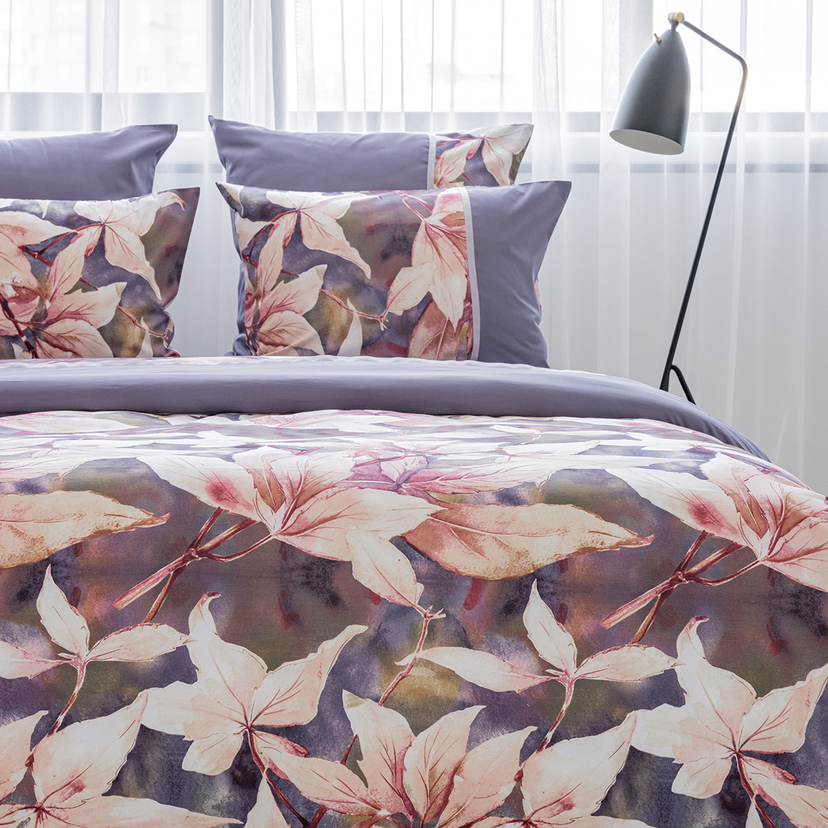 Создавая принт постельного белья Жаклин, дизайнеры вдохновились удивительными природными мотивами. В оригинальном растительном принте комплекта соединились глубокая и сложная гамма оттенков от насыщенного фиолетового до нежно лилового. Смещение красок создает на ткани невероятные переливы.