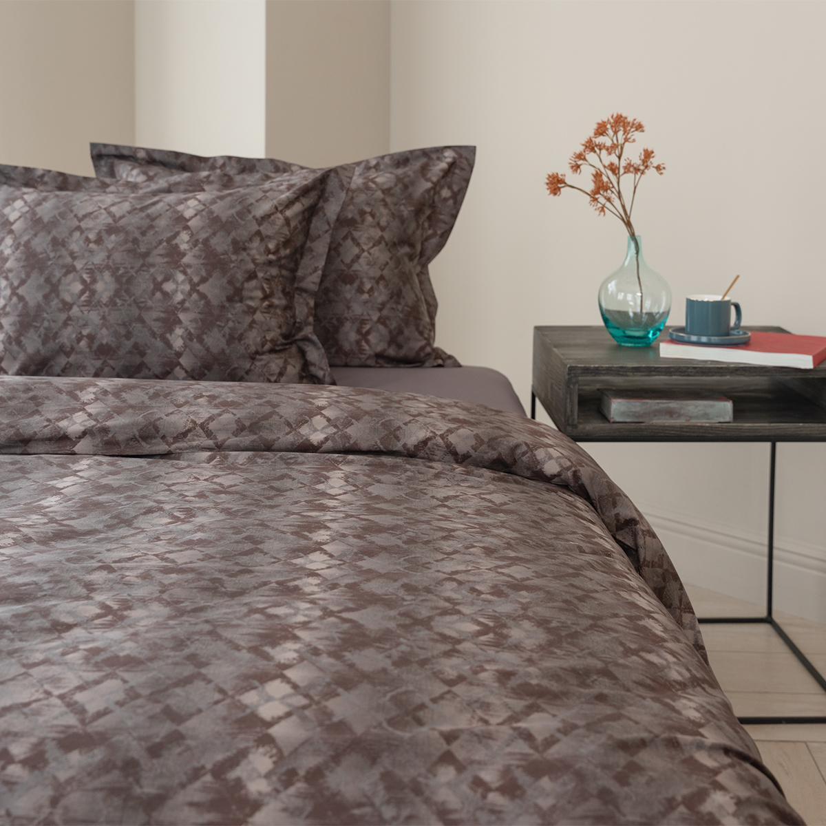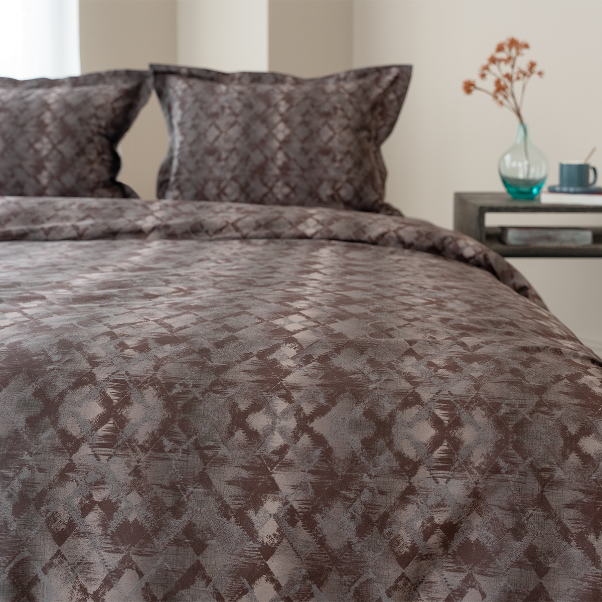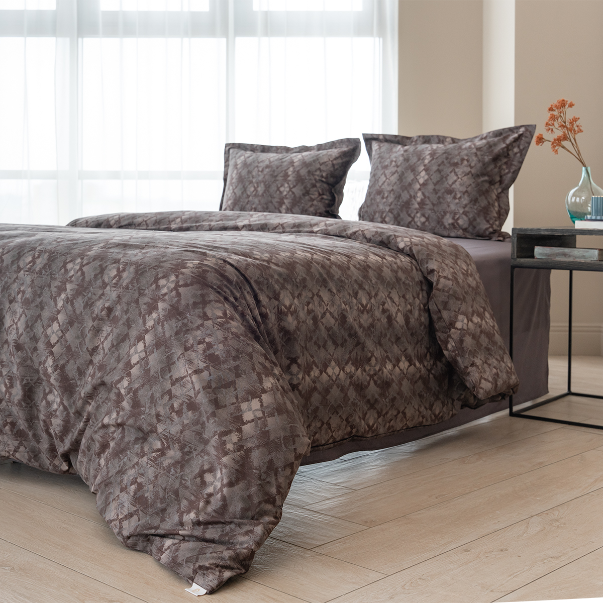 Стильный комплект постельного белья произведен из ткани сатин - 100% хлопок. Благодаря сатиновому плетению двойной крученой нити хлопка, сатин – очень приятная, мягкая, но в то же время прочная ткань. Постельное белье пропускает воздух, поддерживает комфортную температуру тела, когда вы спите.