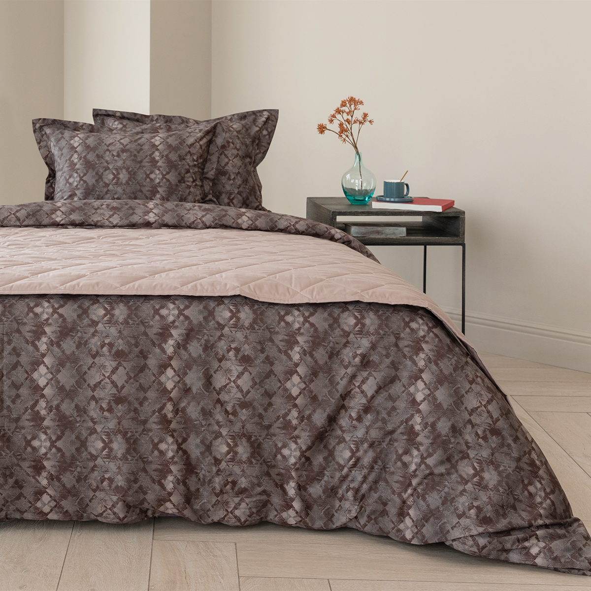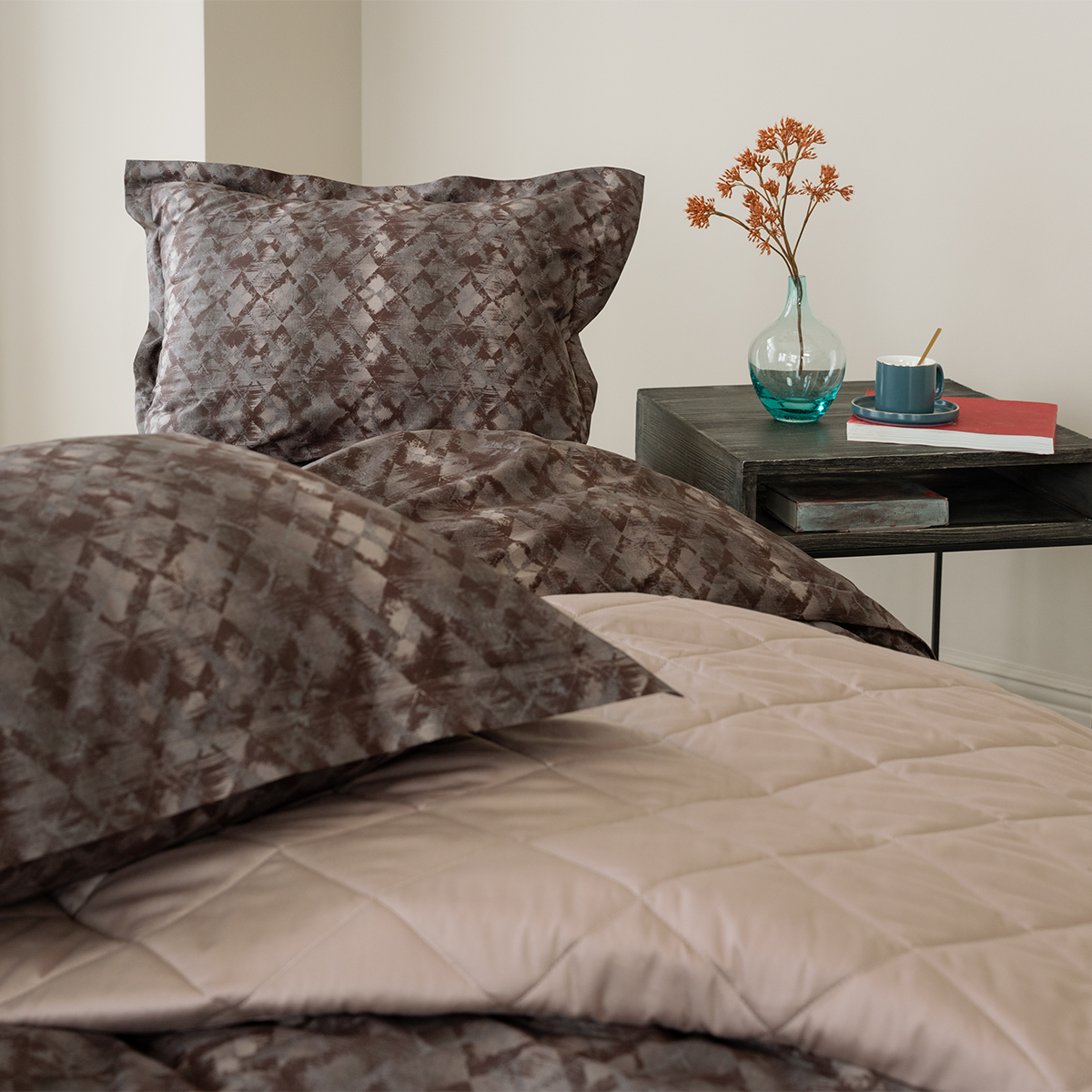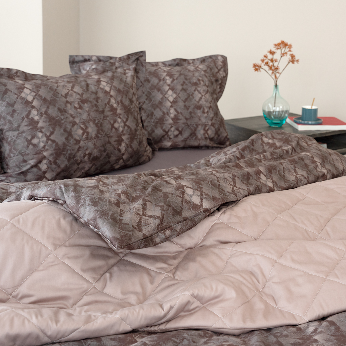 Стильный комплект постельного белья произведен из ткани сатин - 100% хлопок. Благодаря сатиновому плетению двойной крученой нити хлопка, сатин – очень приятная, мягкая, но в то же время прочная ткань. Постельное белье пропускает воздух, поддерживает комфортную температуру тела, когда вы спите.