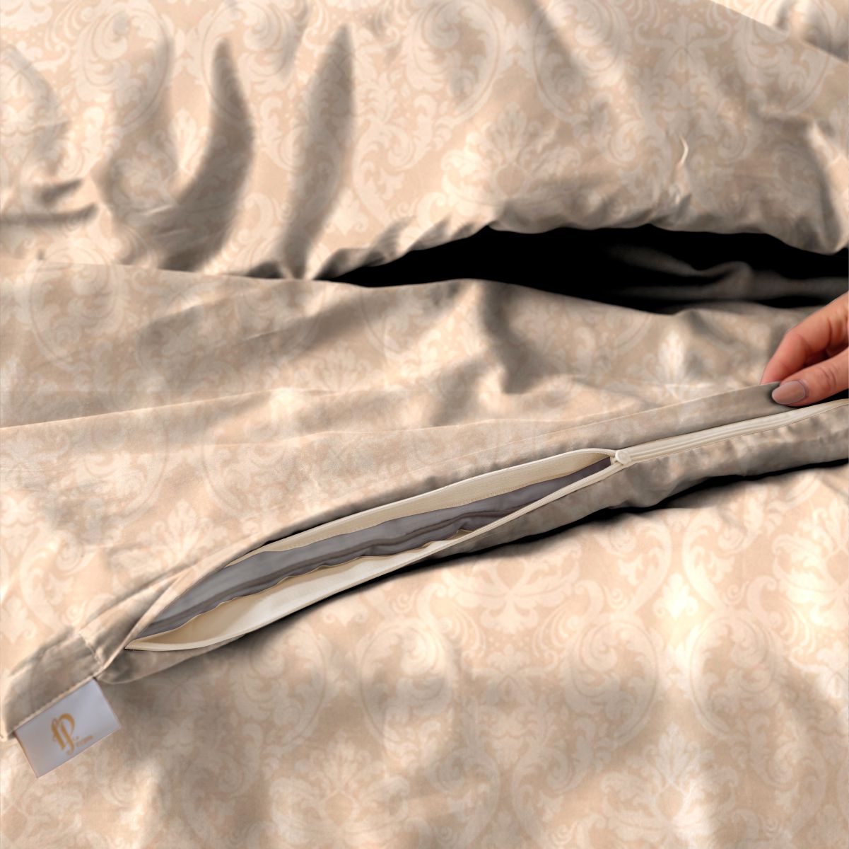 Молния-«невидимка» во всю ширину по нижнему краю и клапаны для рук в верхней части пододеяльника, а также широкий запах наволочки позволяют менять белье быстро как никогда.