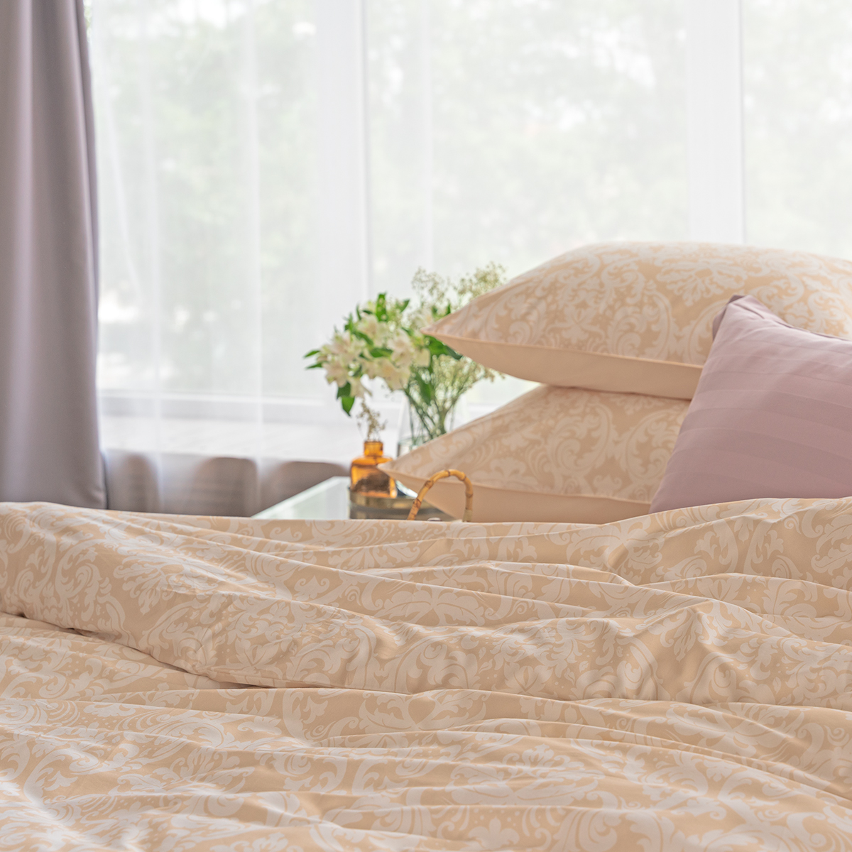 Гладить постельное белье рекомендуем слегка влажным при t° не выше 150 °C.