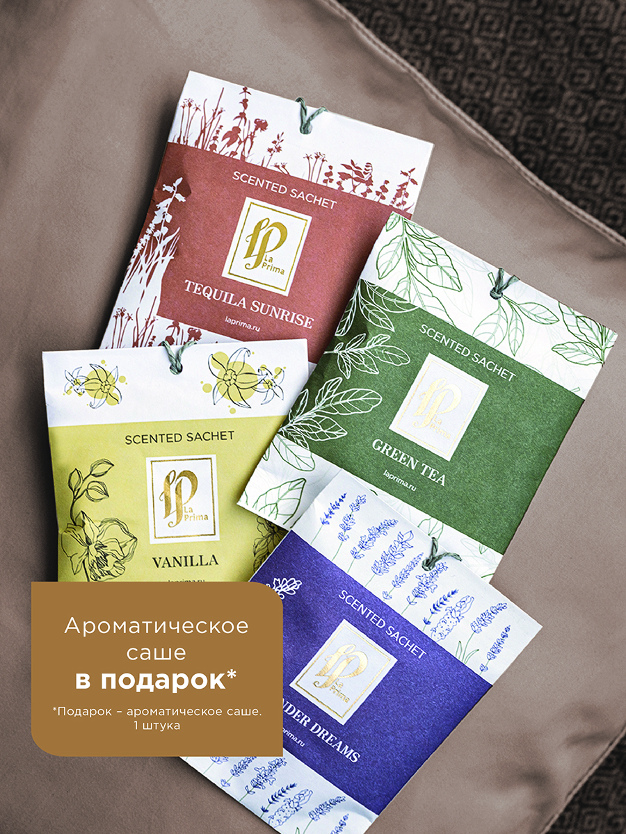 В каждой коробке вы найдете комплимент от нас — ароматическое саше, которое удобно повесить в шкаф или положить в ящик с постельным бельем.