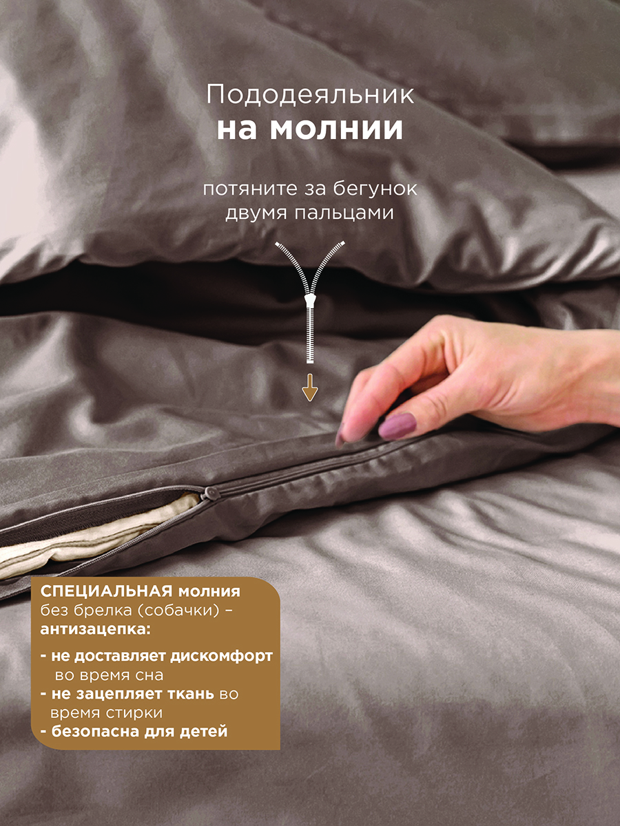 • пододеяльник 175х215 см с «невидимой» молнией-антизацепкой по всей ширине и клапанами для вдевания одеяла.