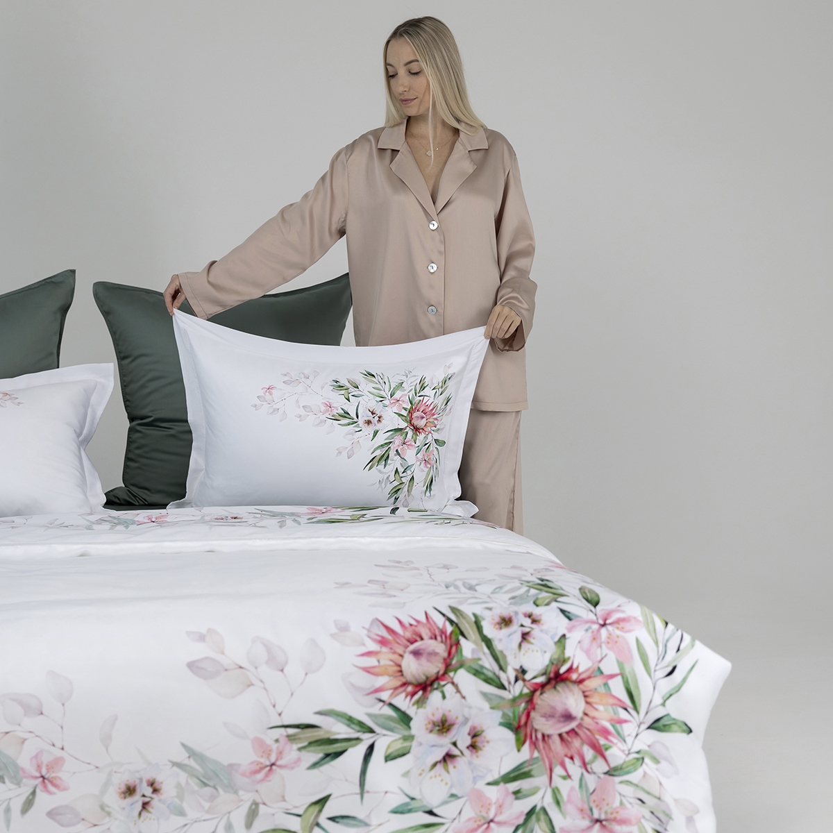 Комплект постельного белья произведен из 100% эвкалиптового волокна Tencel, которое ученые называют инновационным материалом нового поколения.