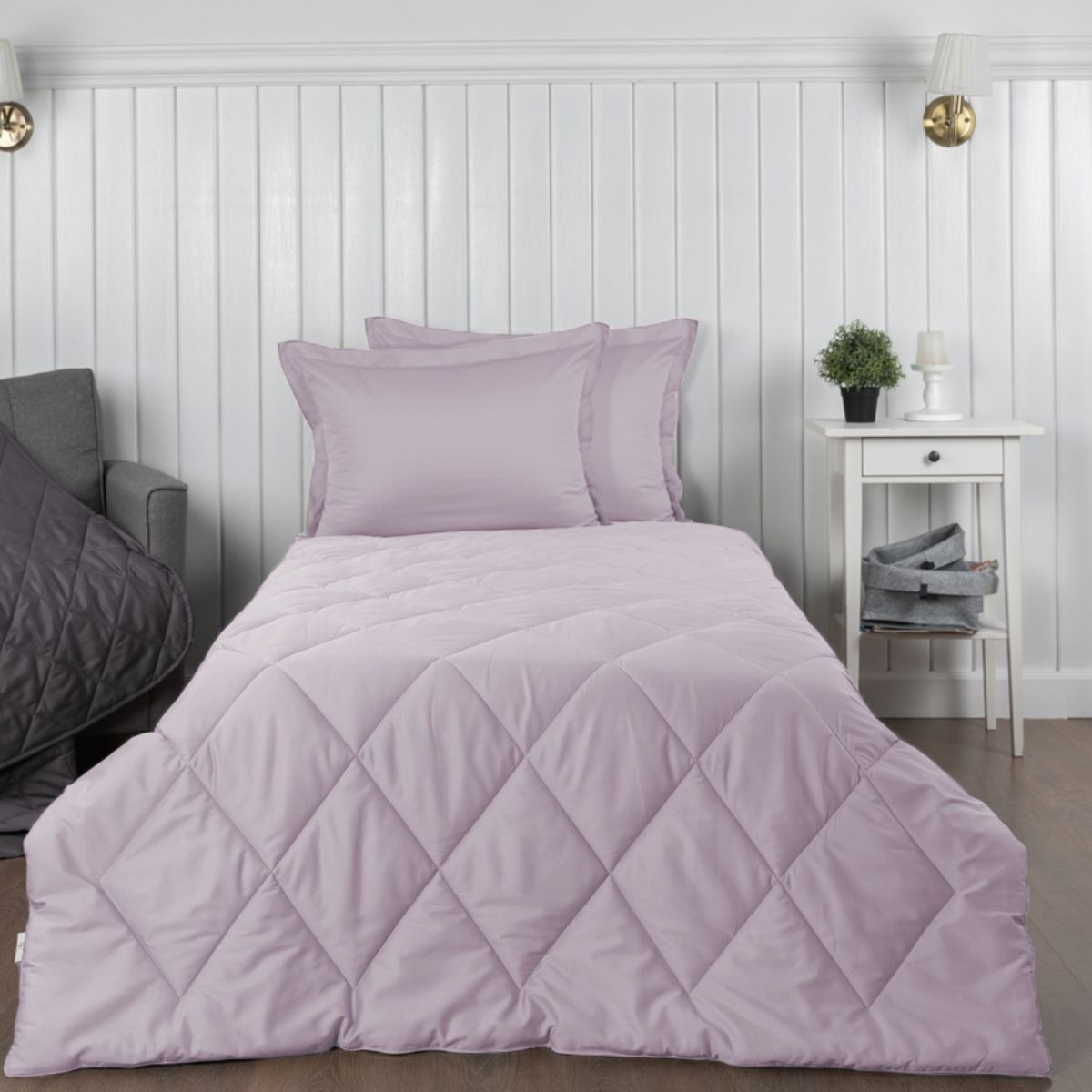 За постельным бельем с одеялом легко ухаживать, его можно стирать в стиральной машине, оно выдерживает до 500 стирок.
