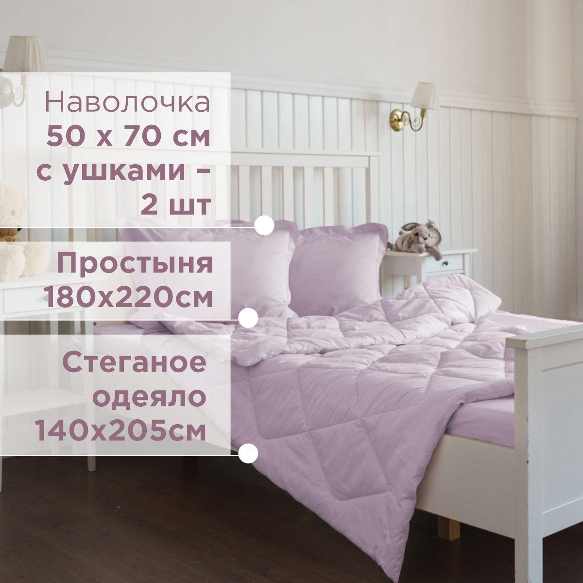 ПОСТЕЛЬНОЕ БЕЛЬЁ САТИН С ОДЕЯЛОМ 2 НАВОЛОЧКИ ФИАЛКОВЫЙ