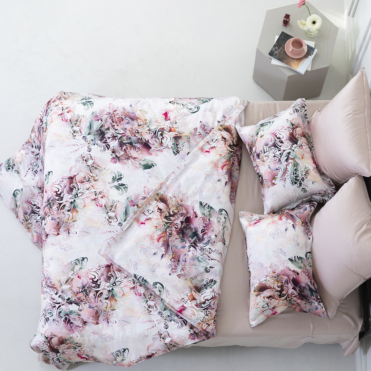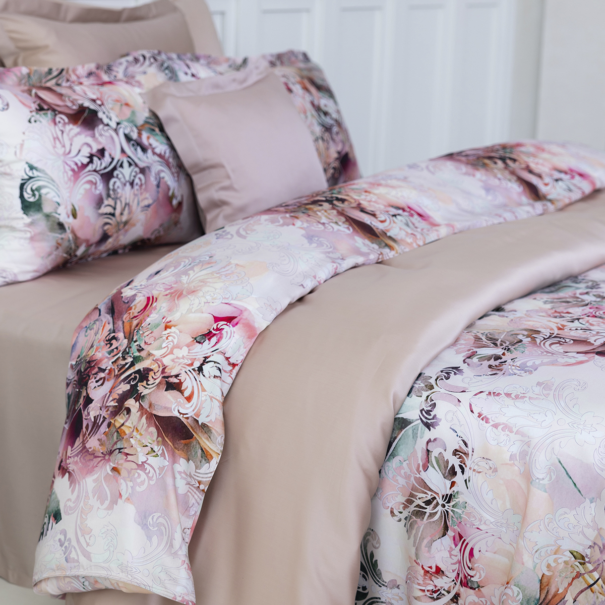 Гладить постельное белье рекомендуем слегка влажным при t° не выше 150 °C.