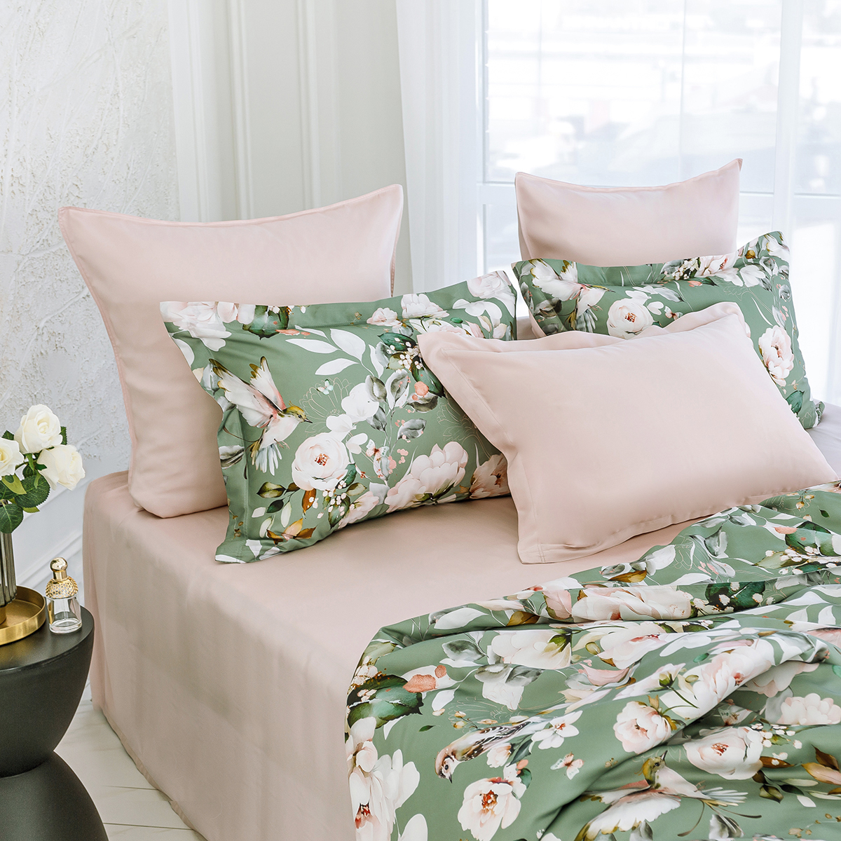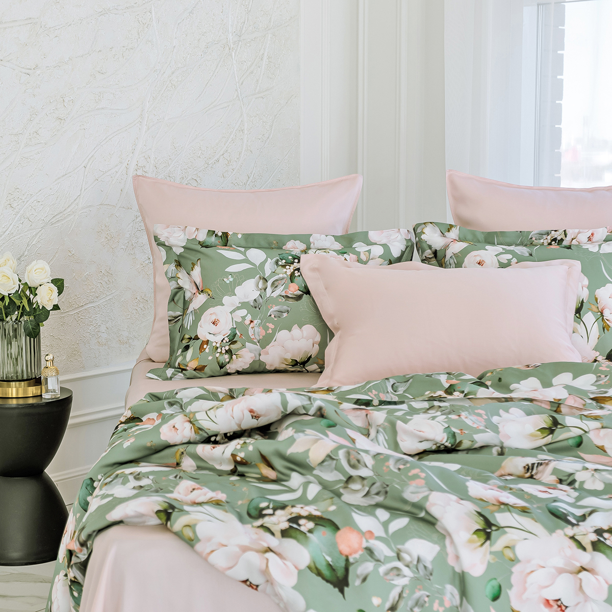 Свежесть цветов создаст в вашем интерьере атмосферу летнего сада. Окунитесь в гармонию природы и роскоши с этим элегантным комплектом, который подчеркнёт ваш безупречный вкус.