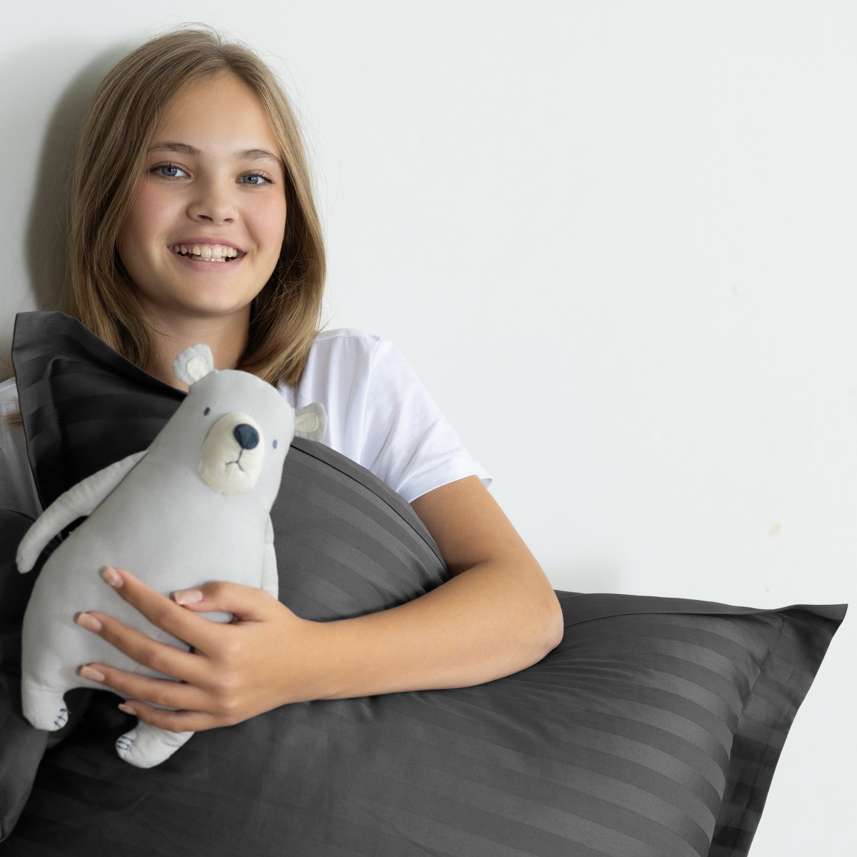 • Наволочки 50х70 см с ушками(из страйп-сатина) – 2 шт. для максимального комфорта и стильного оформления спальни. Клапан для вдевания подушки у наволочки находится по широкой стороне, поэтому сменить её сможет даже ребенок.