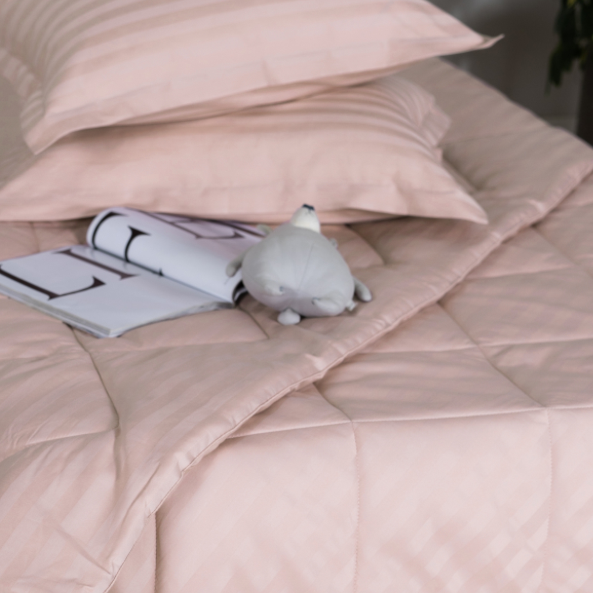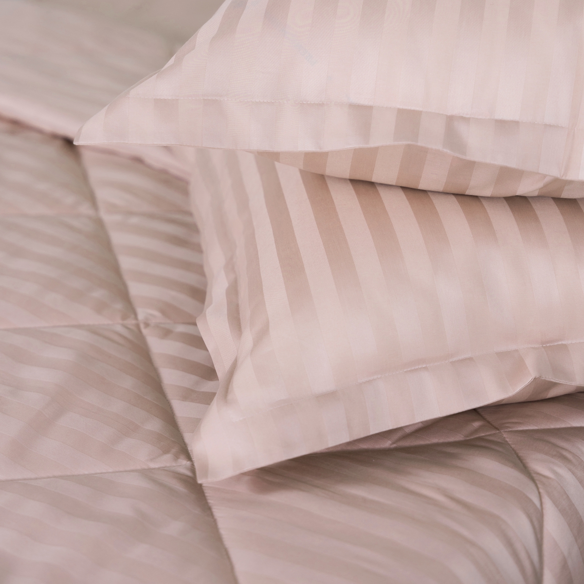 Постельное бельё Cатин | ПОСТЕЛЬНОЕ БЕЛЬЁ СТРАЙП-САТИН С ОДЕЯЛОМ 2 НАВОЛОЧКИ ПУДРА