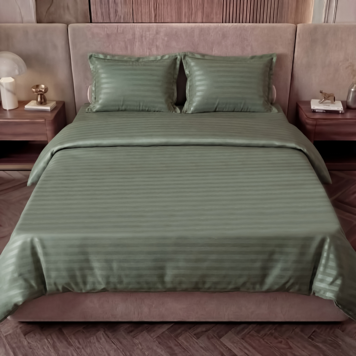 ПОСТЕЛЬНОЕ БЕЛЬЁ СТРАЙП-САТИН ЗЕЛЕНЫЙ