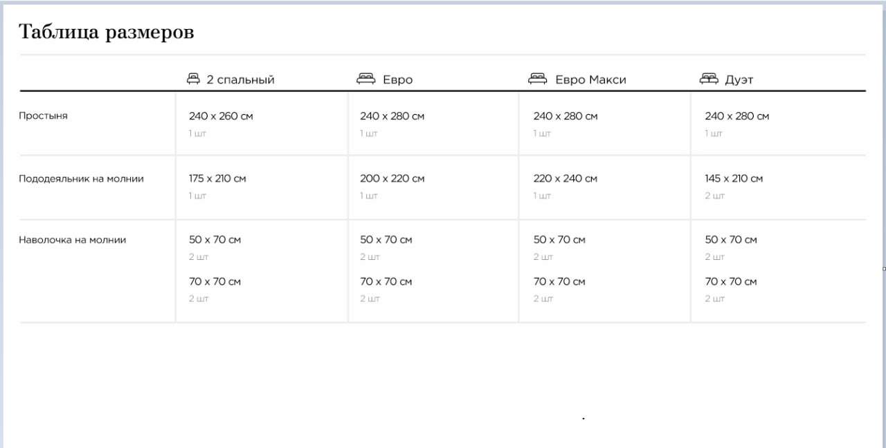 | Детали: | Наволочки на молнии с декоративными ушками по 3-м сторонам и кантом. Пододеяльник на молнии |