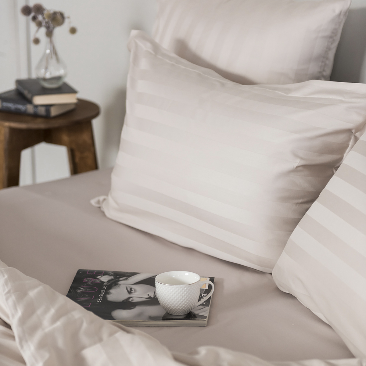 Наволочка Страйп-сатин Белый песок