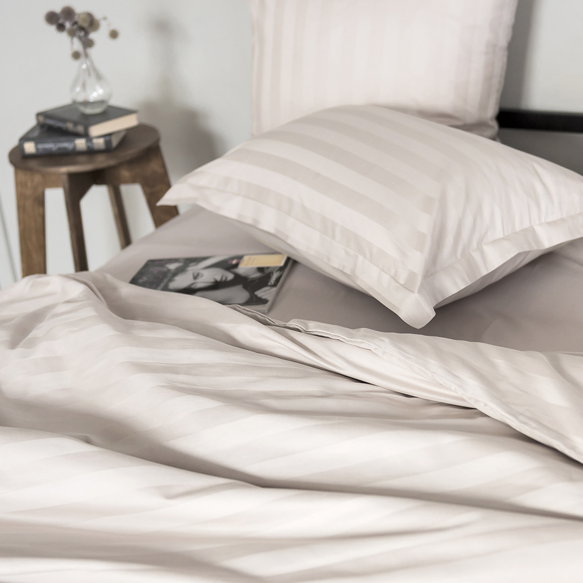 Однотонная стильная наволочка произведена из ткани страйп-сатин 100% хлопок с жаккардовым рисунком в виде полос 3*3. Благодаря специальному плетению - это гладкая, нежная и приятная на ощупь ткань.   Пропускает воздух, поддерживает комфортную температуру тела, когда вы спите.