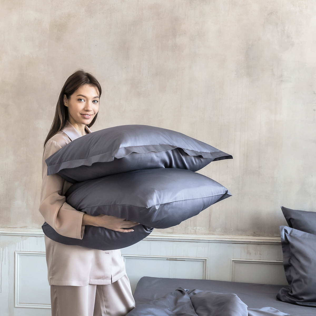 Однотонная стильная наволочка изготовлена из роскошного 100% египетского хлопка высшего сорта, который является самым экологически чистым в мире.