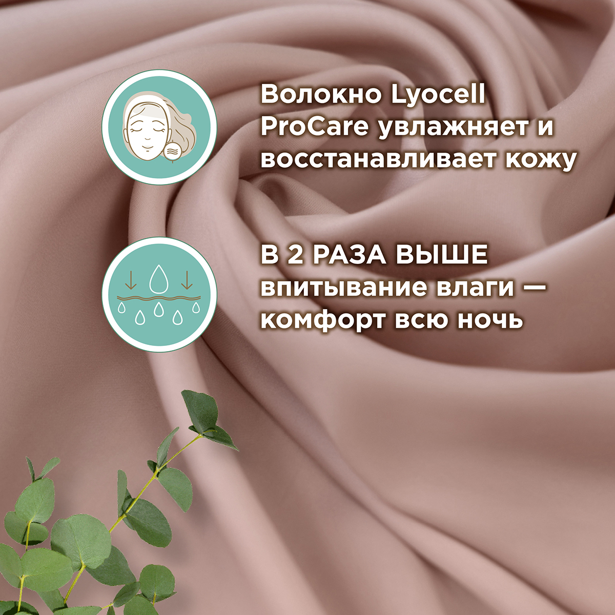 Уникальное волокно Lyocell ProCare обеспечивает восстановление водного баланса дермы. Отмечается увлажнение, смягчение и регенерация кожи. Кроме того, показатель впитывания влаги в 2 раза выше, чем у других тканей – гарантия комфорта на протяжении ночи.