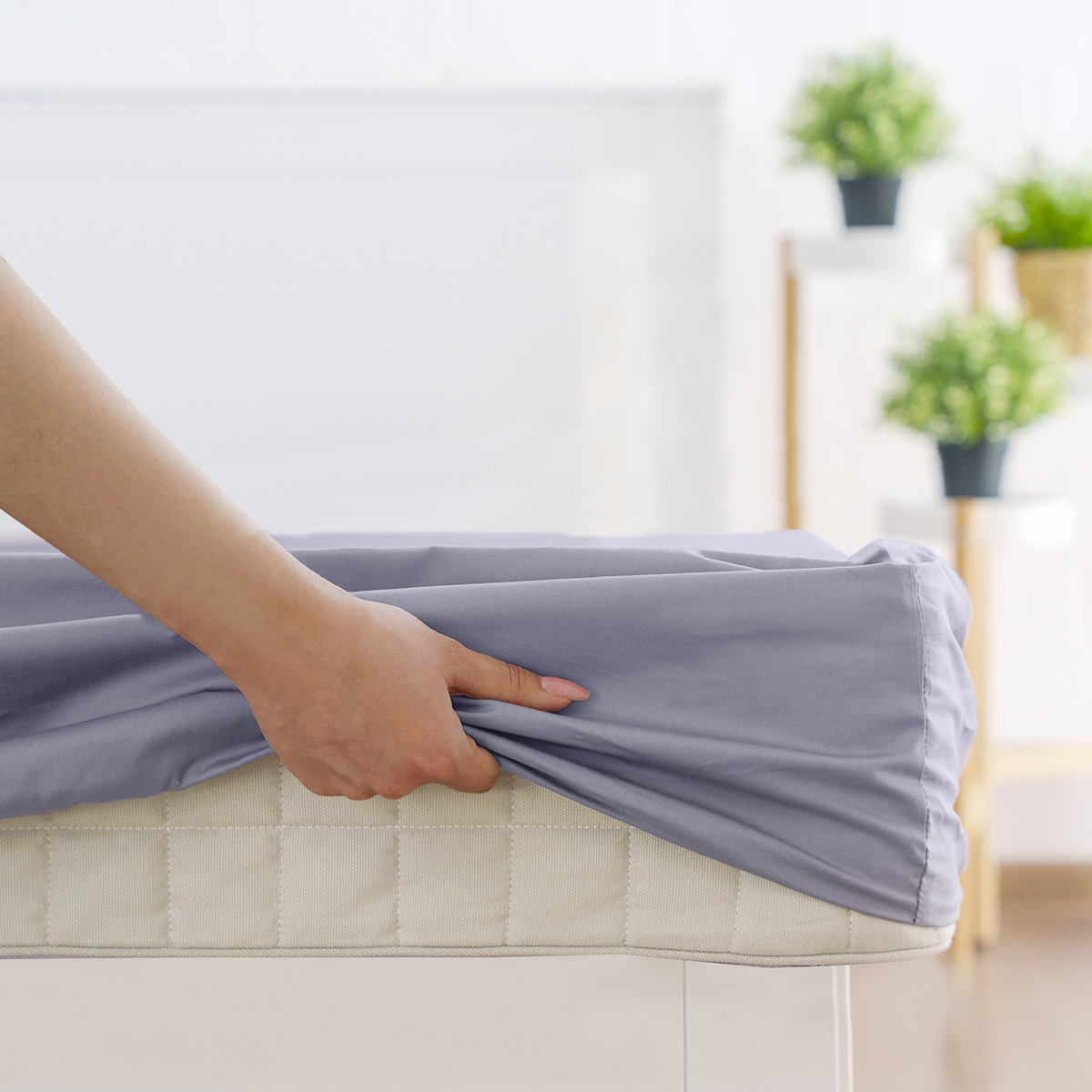 Однотонная стильная простыня на резинке (натяжная) произведена из ткани сатин – 100% хлопок. Благодаря сатиновому плетению двойной крученой нити хлопка, сатин – очень приятная, мягкая, но в то же время прочная ткань. Пропускает воздух, поддерживает комфортную температуру тела, когда вы спите.