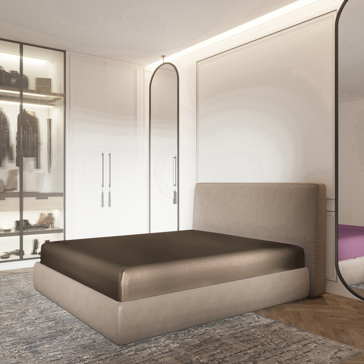 Для вашего интерьера: благородный блеск и трендовые оттенки превращают спальню в приватный бутик-отель, где каждая деталь говорит о безупречном вкусе.